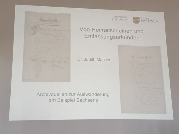 Zu den offiziellen Dokumenten der Auswanderer berichtete Frau Dr. Judith Matzke in ihrem gut besuchten