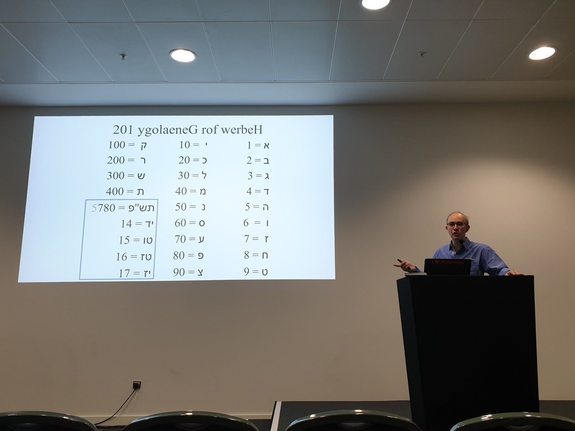 von Daniel Horowitz. Er widmet sich seit 1986 der Ahnenforschung ist im Vorstand der Israel Genealogy Research Association (IGRA). Daniel gab eine tiefen Einblick in genealogische Ressourcen und andere nützliche Datenbanken in Israel, auf die man zugreifen kann, um Verwandte bzw. Vorfahren zu finden. Zum überwinden der Sprache-Barriere gab es eine grundlegende Lektion Hebräisch und Hilfe wie man effizient ins Englische übersetzt. Viele Tipps & Tricks wurden in diesem Vortrag interessant präsentiert.