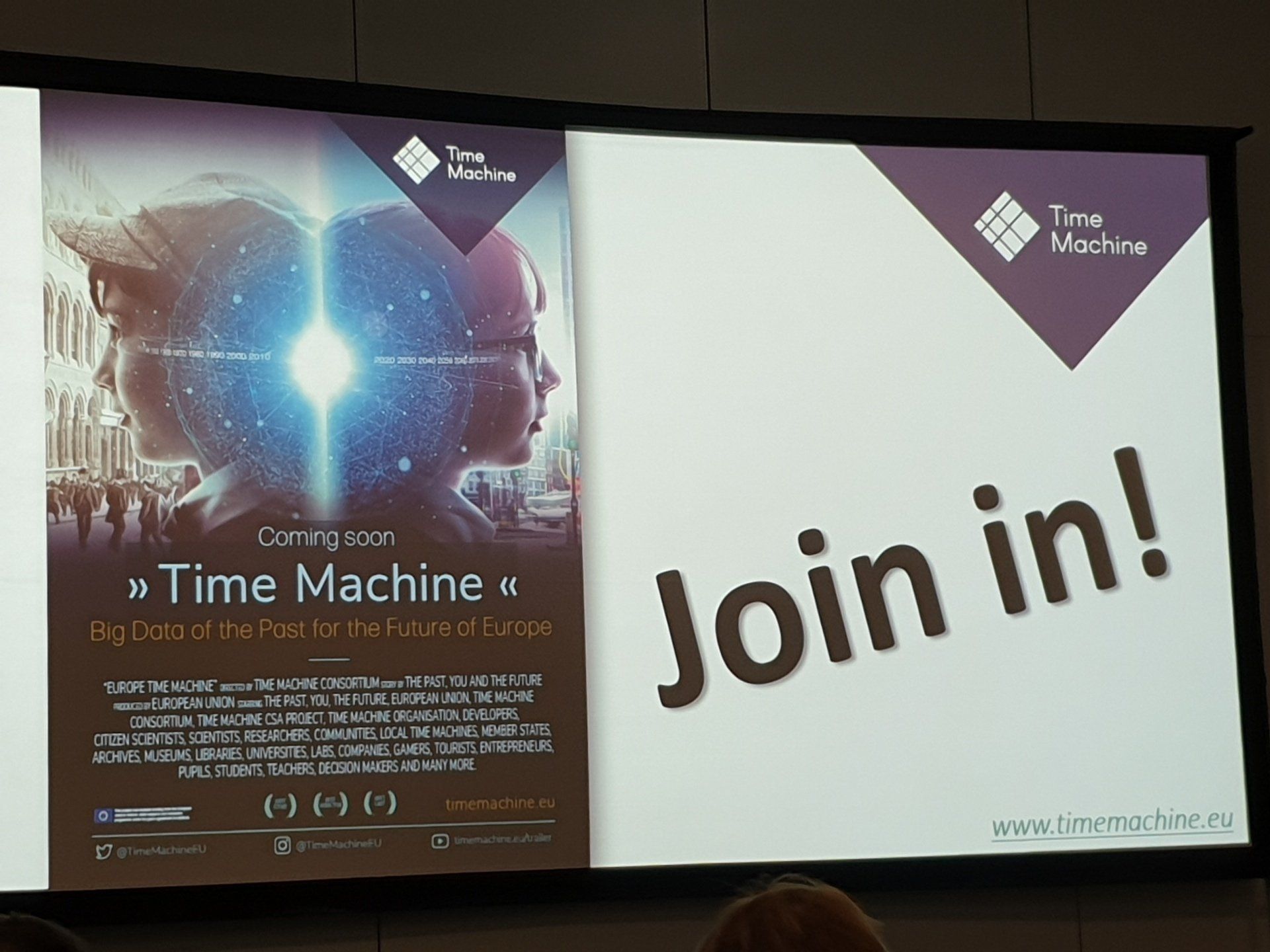 Gleich drei Referenten berichteten über das europäische Gemeinschaftsprojekt timemachine.eu . Ziel ist eine Art "Facebook der Vergangenheit". Mit Hilfe alter Daten und modernster Technologie soll unser europäisches Kulturerbe, welches in analoger Form vorliegt sichtbar, nutzbar und somit "begehbar" gemacht werden. Zur Zeit gibt es schon einige lokale "Zeitmaschinen" für Dresden, Leipzig, Nürnberg sowie Wien im deutschsprachigen Raum. Für das europäische Projekt ist bereits Venedig online gegangen. Es wird auf jeden Fall spannend und wir sollten dieses Projekt auch in Zukunft weiter im Auge behalten!