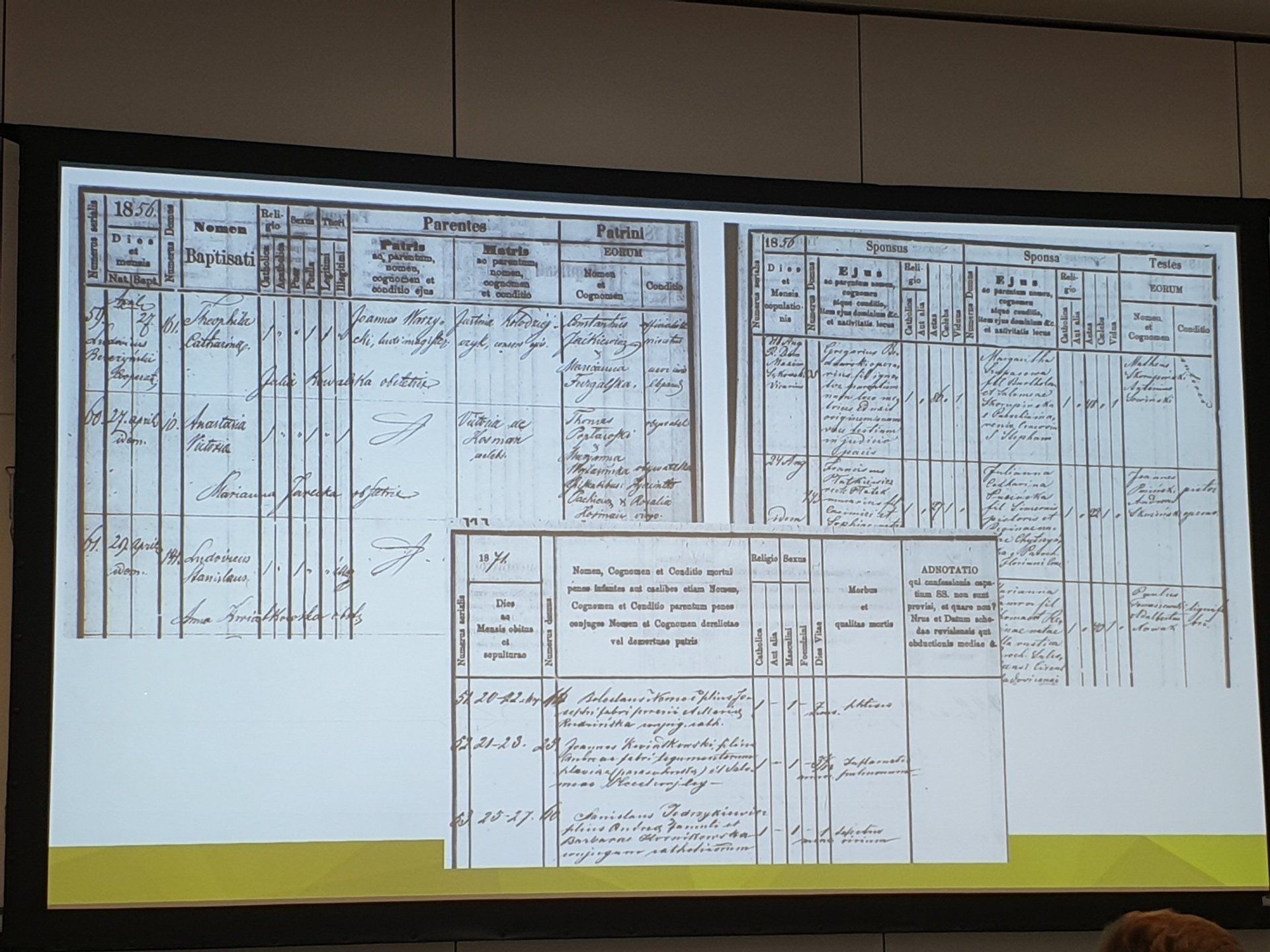 Wie forscht man in Polen, das 123 Jahre lang als Land nicht existierte (1772 - 1918)? Viele Menschen, die in den Auswanderungsbüchern ihrer Vorfahren österreichische, ungarische, russische und preußische Einwanderungsregister sehen, wissen nicht, dass ihre Familie tatsächlich aus Polen in seinen historischen Grenzen stammen könnte. Während des Vortrags gab es einen kleinen Einblick in die polnische Geschichte und einige Tipps, wie man mit der polnischen Genealogie beginnt. Es wurde über Galicien, Pommern, Schlesien, Ruthenien, Wolhynien und die Suche und Beschaffung von Aufzeichnungen aus diesen Regionen besprochen. Einige relevante Datenbanken, Archive und ein paar polnische Wörter wurde anschaulich vorgestellt. Nun kann die Suche nach polnischen Wurzeln beginnen!